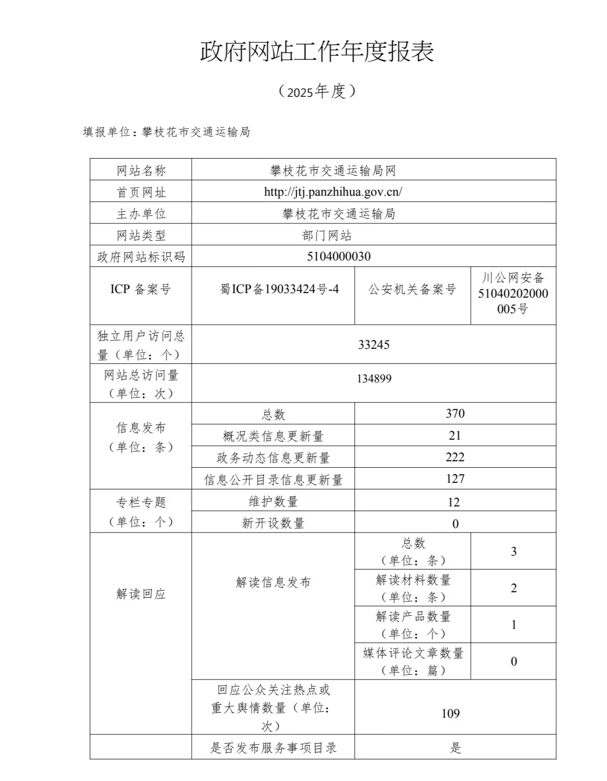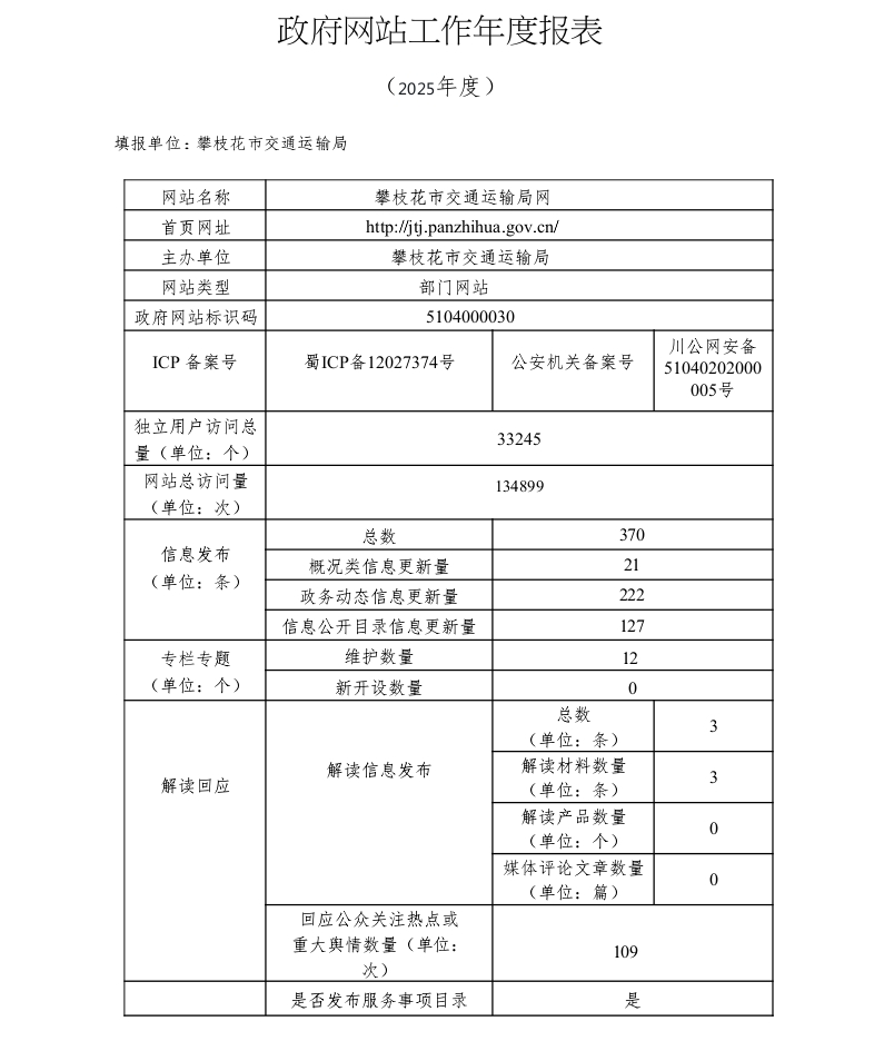 攀枝花市交通运输局网站工作年度报表(2025年度)
